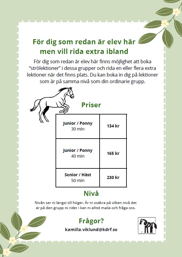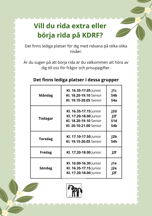 Lediga ridplatser / rida extra